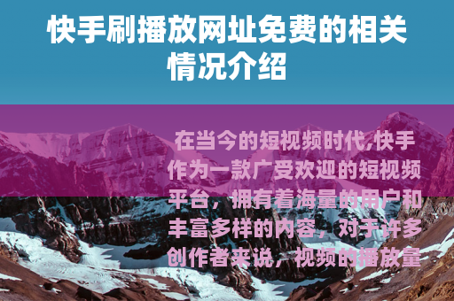 在当今的短视频时代,快手作为一款广受欢迎的短视频平台,拥有着海量的用户和丰富多样的内容,对于许多创作者来说,视频的播放量是衡量其作品受欢迎程度的一个重要指标,在这样的背景下,一些所谓的快手刷播放网址免费的信息开始在网络上流传。