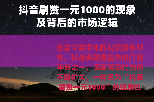 在当今数字化的社交媒体时代,抖音无疑是最为热门的平台之一,随着其影响力的不断扩大,一种名为“抖音刷赞一元1000”的现象也逐渐进入了大众的视野。