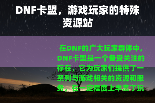 在DNF的广大玩家群体中,DNF卡盟是一个备受关注的存在,它为玩家们提供了一系列与游戏相关的资源和服务,在一定程度上丰富了玩家的游戏体验。