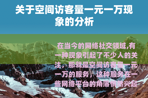 在当今的网络社交领域,有一种现象引起了不少人的关注,那就是空间访客量一元一万的服务,这种服务在一些网络平台的角落悄然兴起,吸引着众多希望提升自己空间热度的用户。