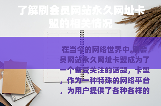 在当今的网络世界中,刷会员网站永久网址卡盟成为了一个备受关注的话题,卡盟,作为一种特殊的网络平台,为用户提供了各种各样的虚拟商品和服务交易。