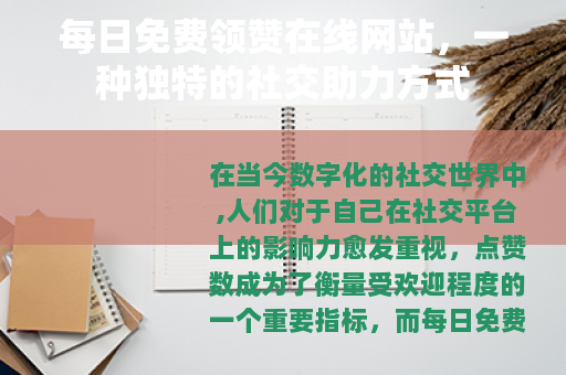 在当今数字化的社交世界中,人们对于自己在社交平台上的影响力愈发重视,点赞数成为了衡量受欢迎程度的一个重要指标,而每日免费领赞在线网站的出现,为许多渴望提升社交热度的用户提供了一条新的途径。