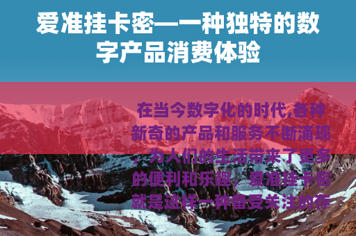 在当今数字化的时代,各种新奇的产品和服务不断涌现,为人们的生活带来了更多的便利和乐趣,爱准挂卡密就是这样一种备受关注的存在。