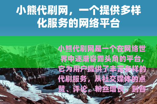 小熊代刷网是一个在网络世界中逐渐崭露头角的平台,它为用户提供了丰富多样的代刷服务,从社交媒体的点赞、评论、粉丝增长,到各类视频平台的播放量、订阅量提升,小熊代刷网似乎都能满足用户的不同需求。