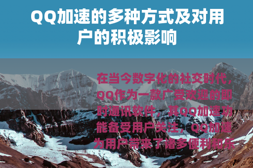 在当今数字化的社交时代,QQ作为一款广受欢迎的即时通讯软件,其QQ加速功能备受用户关注,QQ加速为用户带来了诸多便利和乐趣,丰富了用户的使用体验。