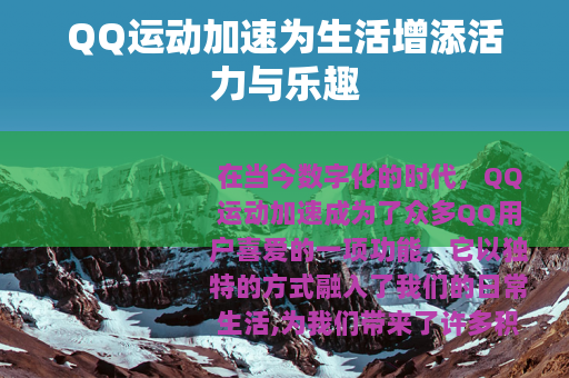 在当今数字化的时代,QQ运动加速成为了众多QQ用户喜爱的一项功能,它以独特的方式融入了我们的日常生活,为我们带来了许多积极的影响。