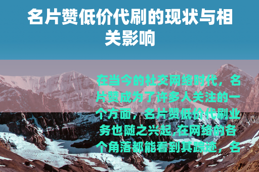 在当今的社交网络时代,名片赞成为了许多人关注的一个方面,名片赞低价代刷业务也随之兴起,在网络的各个角落都能看到其踪迹。