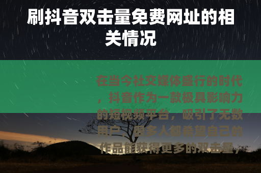 在当今社交媒体盛行的时代,抖音作为一款极具影响力的短视频平台,吸引了无数用户,很多人都希望自己的作品能获得更多的双击量,从而提高曝光度和人气,网络上出现了一些声称提供刷抖音双击量免费网址的信息。