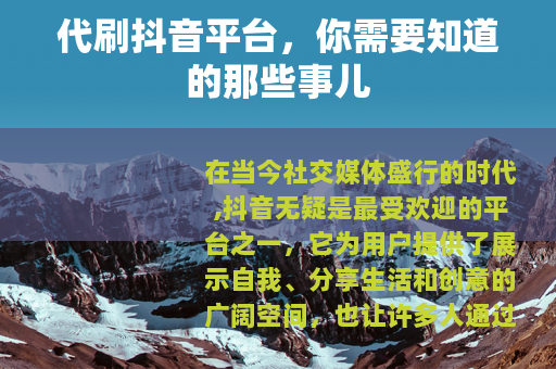 在当今社交媒体盛行的时代,抖音无疑是最受欢迎的平台之一,它为用户提供了展示自我、分享生活和创意的广阔空间,也让许多人通过优质的内容获得了大量的关注和粉丝,随着抖音的火爆,一种名为代刷抖音平台的服务也悄然兴起。