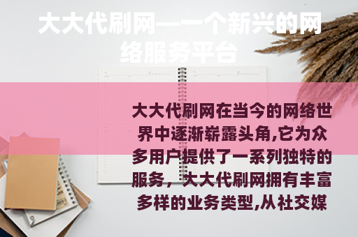 大大代刷网在当今的网络世界中逐渐崭露头角,它为众多用户提供了一系列独特的服务。