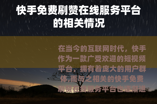 在当今的互联网时代,快手作为一款广受欢迎的短视频平台,拥有着庞大的用户群体,而与之相关的快手免费刷赞在线服务平台也逐渐进入了人们的视野。