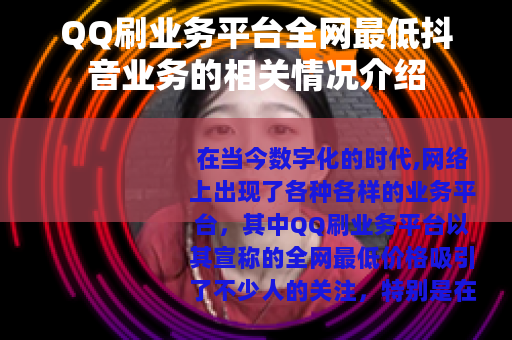 在当今数字化的时代,网络上出现了各种各样的业务平台,其中QQ刷业务平台以其宣称的全网最低价格吸引了不少人的关注,特别是在抖音相关业务方面。