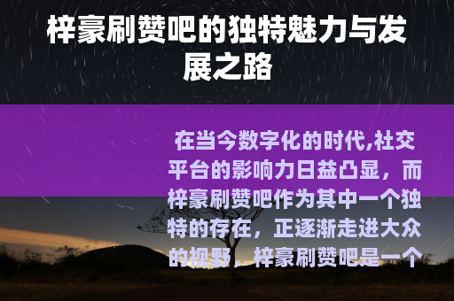 在当今数字化的时代,社交平台的影响力日益凸显,而梓豪刷赞吧作为其中一个独特的存在,正逐渐走进大众的视野。