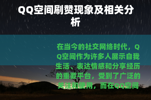 在当今的社交网络时代,QQ空间作为许多人展示自我生活、表达情感和分享经历的重要平台,受到了广泛的关注和使用,而在QQ空间的各种互动元素中,点赞数量成为了衡量一条动态受欢迎程度的重要指标之一,QQ空间刷赞这一行为逐渐兴起并引发了不少讨论。