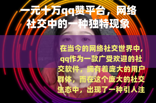 在当今的网络社交世界中,qq作为一款广受欢迎的社交软件,拥有着庞大的用户群体,而在这个庞大的社交生态中,出现了一种引人注目的现象,那就是一元十万qq赞平台。