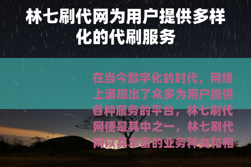林七刷代网在网络服务领域中占据着一席之地,它以其多样化的业务、便捷的操作和良好的用户体验,为广大用户提供了一种提升网络影响力和实现自身目标的途径,在使用林七刷代网或其他类似平台的服务时,用户也需要根据自身的实际情况和需求,合理选择和使用,以确保能够获得最大的收益和价值。
