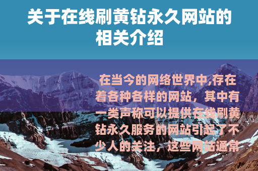 在当今的网络世界中,存在着各种各样的网站,其中有一类声称可以提供在线刷黄钻永久服务的网站引起了不少人的关注,这些网站通常打着诱人的旗号,吸引着众多用户想要去尝试获取免费且永久的黄钻服务。