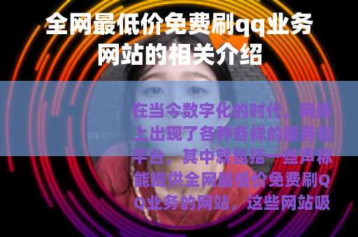 在当今数字化的时代,网络上出现了各种各样的服务和平台,其中就包括一些声称能提供全网最低价免费刷QQ业务的网站,这些网站吸引了众多QQ用户的关注,他们希望能够以较低的成本甚至免费的方式来获取更多的QQ业务服务,从而提升自己在QQ社交平台上的体验。
