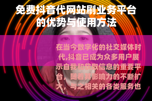 在当今数字化的社交媒体时代,抖音已成为众多用户展示自我和获取信息的重要平台,随着其影响力的不断扩大,与之相关的各类服务也应运而生,其中免费抖音代网站刷业务平台备受关注。