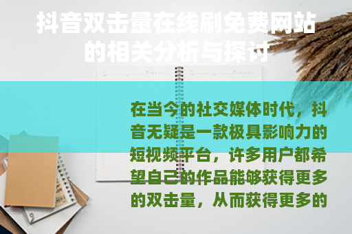 在当今的社交媒体时代,抖音无疑是一款极具影响力的短视频平台,许多用户都希望自己的作品能够获得更多的双击量,从而获得更多的关注和认可,在这样的背景下,抖音双击量在线刷免费网站应运而生。