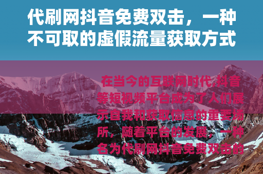 在当今的互联网时代,抖音等短视频平台成为了人们展示自我和获取信息的重要场所,随着平台的发展,一种名为代刷网抖音免费双击的现象逐渐兴起,吸引了不少人的关注。