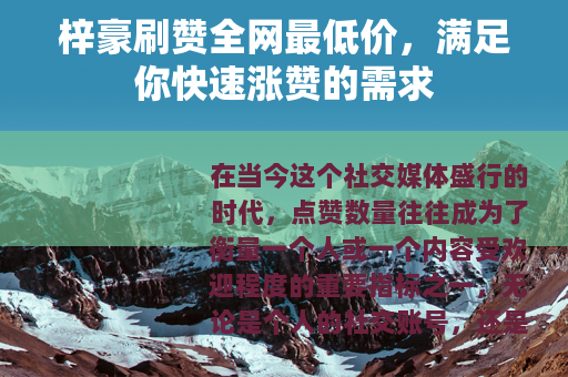 在当今这个社交媒体盛行的时代,点赞数量往往成为了衡量一个人或一个内容受欢迎程度的重要指标之一,无论是个人的社交账号,还是各类商家、网红的宣传平台,高点赞量都能带来更多的关注和机会,而梓豪刷赞以其全网最低价的优势,迅速在市场中崭露头角,为众多用户提供了一种高效且经济实惠的涨赞途径。