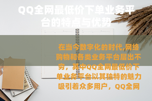 在当今数字化的时代,网络购物和各类业务平台层出不穷,其中QQ全网最低价下单业务平台以其独特的魅力吸引着众多用户。