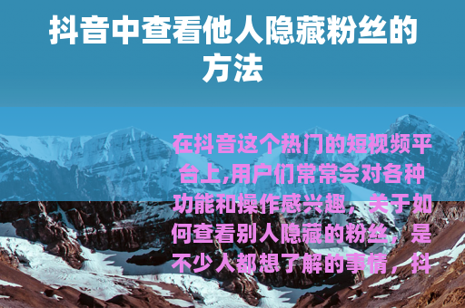 在抖音这个热门的短视频平台上,用户们常常会对各种功能和操作感兴趣,关于如何查看别人隐藏的粉丝,是不少人都想了解的事情。