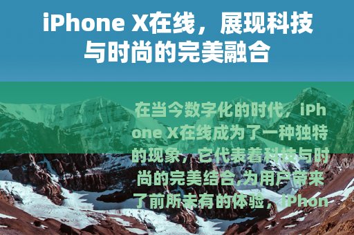 在当今数字化的时代,iPhone X在线成为了一种独特的现象,它代表着科技与时尚的完美结合,为用户带来了前所未有的体验。