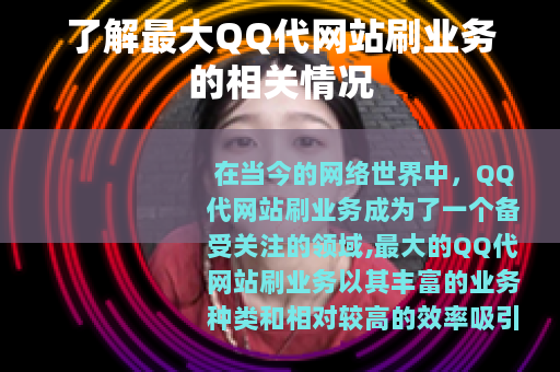 在当今的网络世界中,QQ代网站刷业务成为了一个备受关注的领域,最大的QQ代网站刷业务以其丰富的业务种类和相对较高的效率吸引了众多用户的目光。