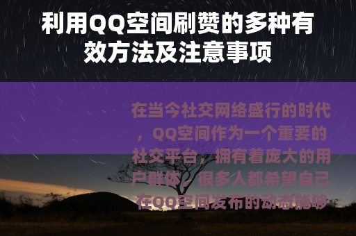 在当今社交网络盛行的时代,QQ空间作为一个重要的社交平台,拥有着庞大的用户群体,很多人都希望自己在QQ空间发布的动态能够获得更多的赞,以此来展示自己的人气和魅力,下面就为大家介绍一些关于QQ空间刷赞的方法及相关注意事项。