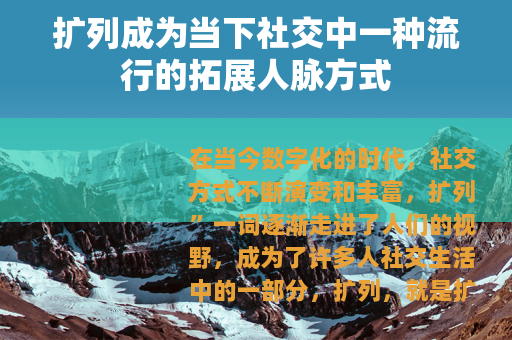 在当今数字化的时代,社交方式不断演变和丰富,扩列”一词逐渐走进了人们的视野,成为了许多人社交生活中的一部分,扩列,就是扩充好友列表,通过各种途径结识更多的人,从而扩大自己的社交圈子。