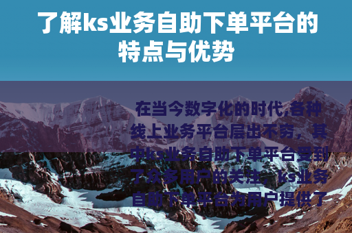 在当今数字化的时代,各种线上业务平台层出不穷,其中ks业务自助下单平台受到了众多用户的关注。