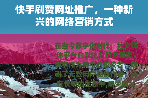 在当今数字化时代,社交媒体平台的影响力日益显著,快手作为其中的佼佼者,吸引了无数用户和创作者,而在快手的生态中,刷赞网址推广也逐渐成为了一个备受关注的话题。