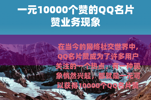 在当今的网络社交世界中,QQ名片赞成为了许多用户关注的一个热点,有一种现象悄然兴起,那就是一元可以获得10000个QQ名片赞的业务。