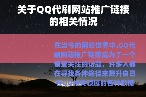 在当今的网络世界中,QQ代刷网站推广链接成为了一个备受关注的话题,许多人都在寻找各种途径来提升自己在QQ相关领域的各种数据,而QQ代刷网站的推广链接也随之应运而生。