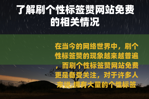 在当今的网络世界中,刷个性标签赞的现象越来越普遍,而刷个性标签赞网站免费更是备受关注,对于许多人来说,拥有大量的个性标签赞可以在一定程度上满足自己的社交需求和心理成就感。