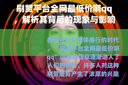 在当今社交媒体盛行的时代,“刷赞平台全网最低价啊qq”这样的信息逐渐进入了人们的视野,许多人对这种刷赞服务产生了浓厚的兴趣,它似乎为那些渴望在网络世界中获得更多关注和认可的人提供了一条捷径。