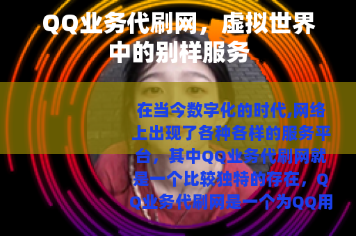 在当今数字化的时代,网络上出现了各种各样的服务平台,其中QQ业务代刷网就是一个比较独特的存在。