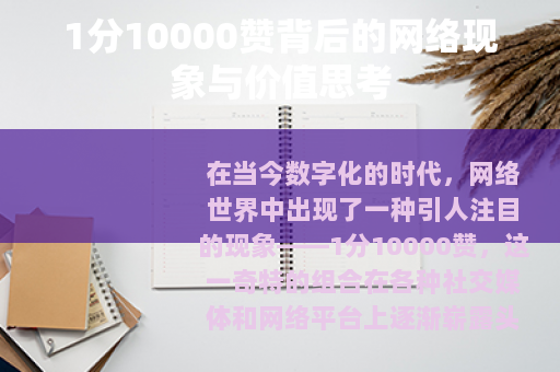 在当今数字化的时代,网络世界中出现了一种引人注目的现象——1分10000赞,这一奇特的组合在各种社交媒体和网络平台上逐渐崭露头角,引发了人们广泛的关注和讨论。
