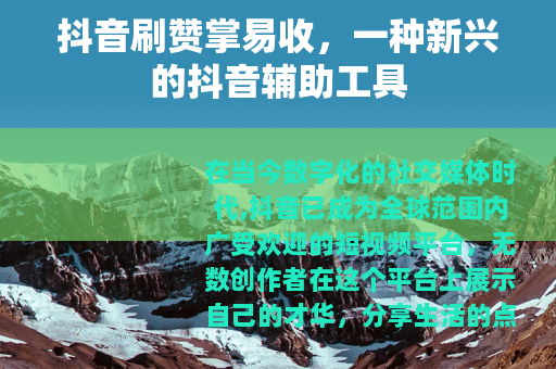 在当今数字化的社交媒体时代,抖音已成为全球范围内广受欢迎的短视频平台,无数创作者在这个平台上展示自己的才华,分享生活的点滴,希望能够获得更多的关注和点赞,而在这个过程中,一些辅助工具也应运而生,抖音刷赞掌易收”便是备受关注的一种。