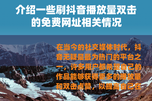 在当今的社交媒体时代,抖音无疑是最为热门的平台之一,许多用户都希望自己的作品能够获得更多的播放量和双击点赞,以提高自己在平台上的知名度和影响力,网络上出现了一些声称可以提供刷抖音播放量双击的免费网址。