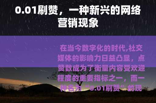 在当今数字化的时代,社交媒体的影响力日益凸显,点赞数成为了衡量内容受欢迎程度的重要指标之一,而一种名为“0.01刷赞”的现象也随之悄然兴起,吸引了众多用户和商家的关注。