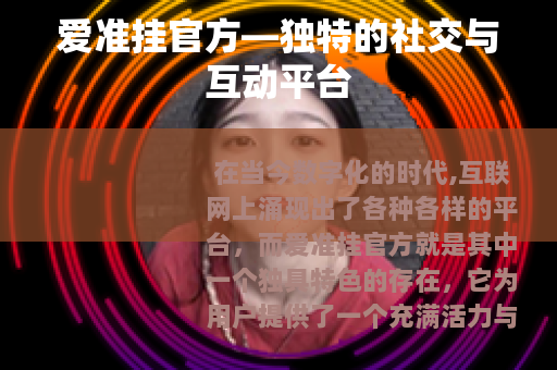 在当今数字化的时代,互联网上涌现出了各种各样的平台,而爱准挂官方就是其中一个独具特色的存在,它为用户提供了一个充满活力与乐趣的社交空间,让人们能够在这里尽情地展现自我,结交志同道合的朋友,分享生活中的点滴与感悟。