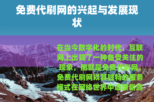 在当今数字化的时代,互联网上出现了一种备受关注的现象,那就是免费代刷网,免费代刷网以其独特的服务模式在网络世界中逐渐崭露头角,吸引了众多用户的目光。
