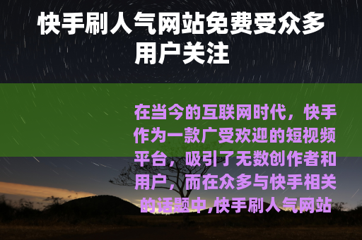 在当今的互联网时代,快手作为一款广受欢迎的短视频平台,吸引了无数创作者和用户,而在众多与快手相关的话题中,快手刷人气网站免费这一现象逐渐引起了大家的注意。