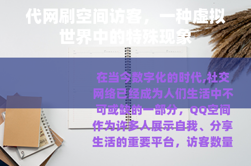 在当今数字化的时代,社交网络已经成为人们生活中不可或缺的一部分,QQ空间作为许多人展示自我、分享生活的重要平台,访客数量往往被视为一种受欢迎程度和社交影响力的象征,而代网刷空间访客这一现象也随之悄然兴起。