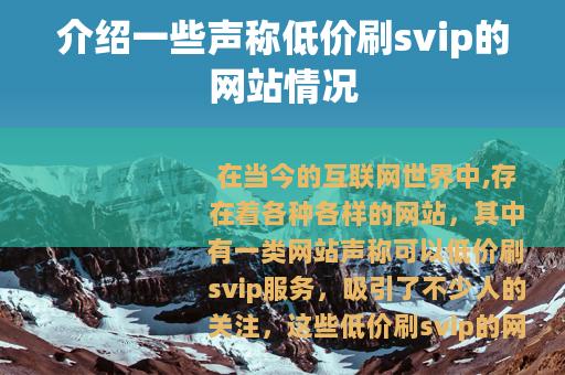 在当今的互联网世界中,存在着各种各样的网站,其中有一类网站声称可以低价刷svip服务,吸引了不少人的关注。