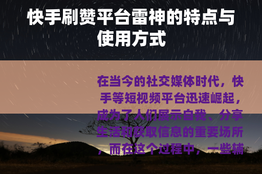 在当今的社交媒体时代,快手等短视频平台迅速崛起,成为了人们展示自我、分享生活和获取信息的重要场所,而在这个过程中,一些辅助工具也应运而生,快手刷赞平台雷神便是其中之一。