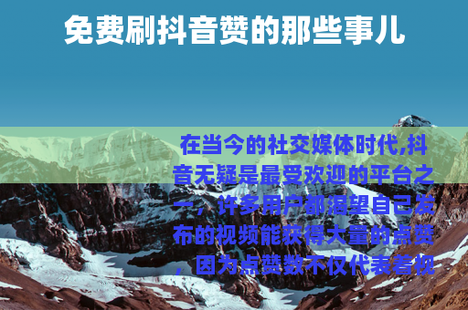 在当今的社交媒体时代,抖音无疑是最受欢迎的平台之一,许多用户都渴望自己发布的视频能获得大量的点赞,因为点赞数不仅代表着视频的受欢迎程度,还能在一定程度上增加账号的曝光度和影响力。“免费刷抖音赞”这样的话题便应运而生,吸引了众多用户的关注。